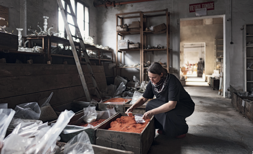 Die fantastische Geschichte der Textildesignerin Cécile Feilchenfeldt, die in einer stillgelegten Glasperlenfabrik in Murano (Venedig) eine wunderbare Entdeckung machte.